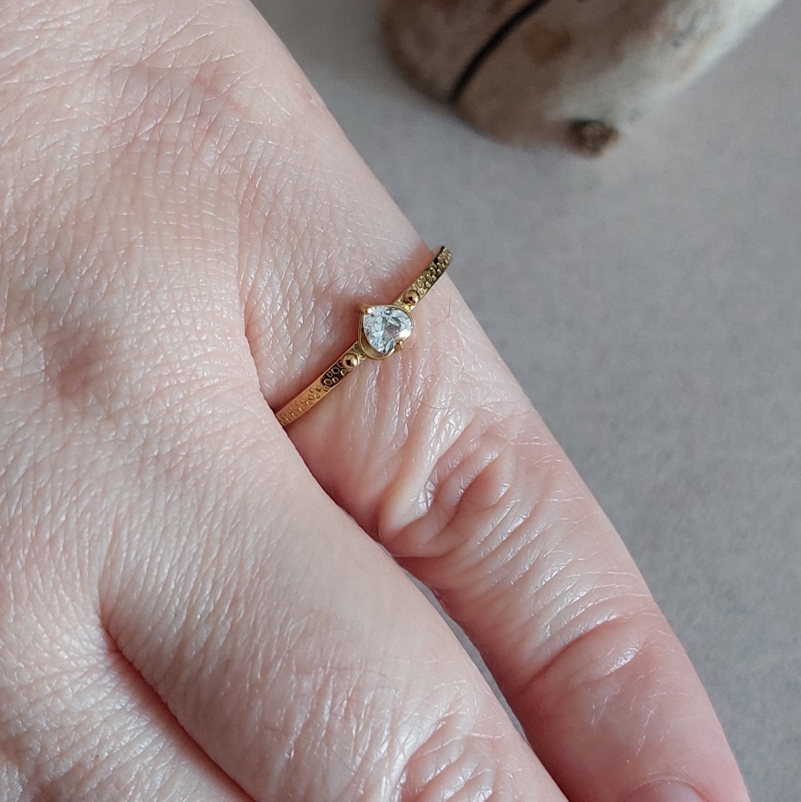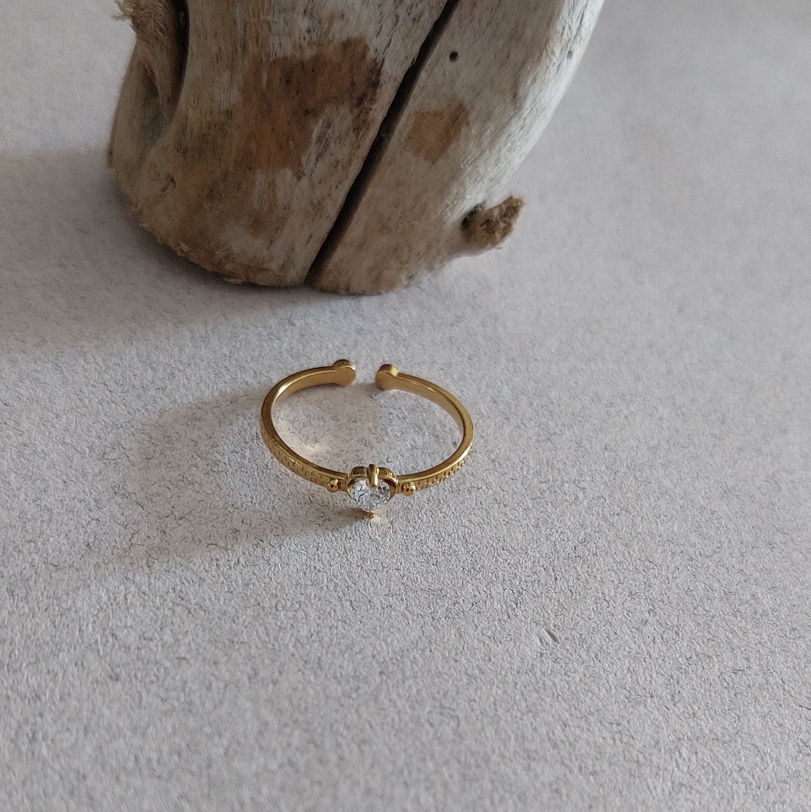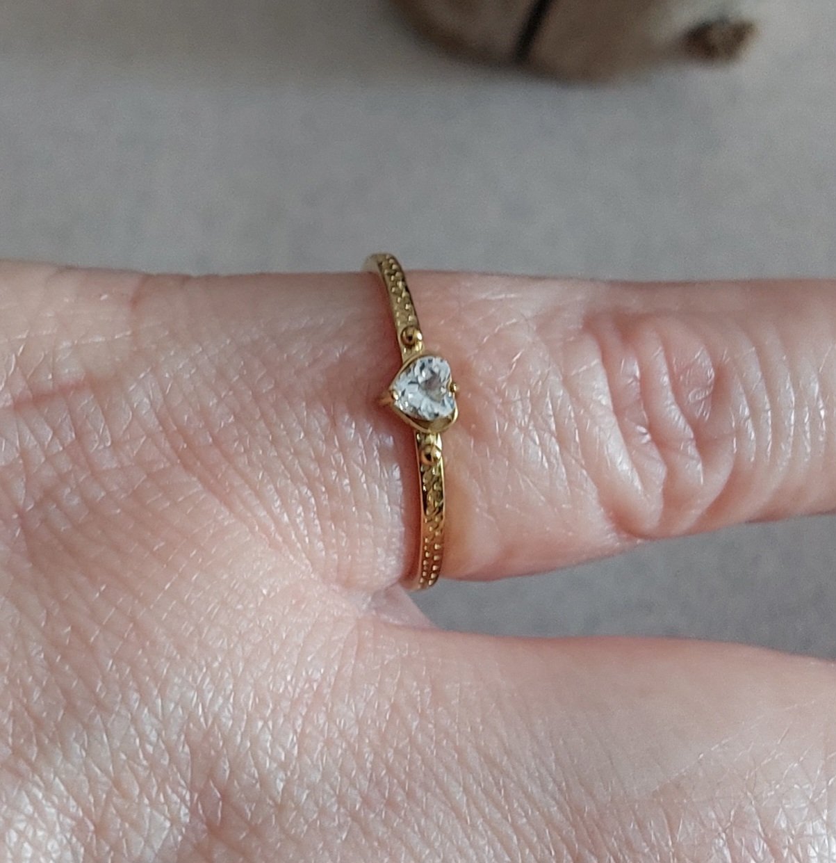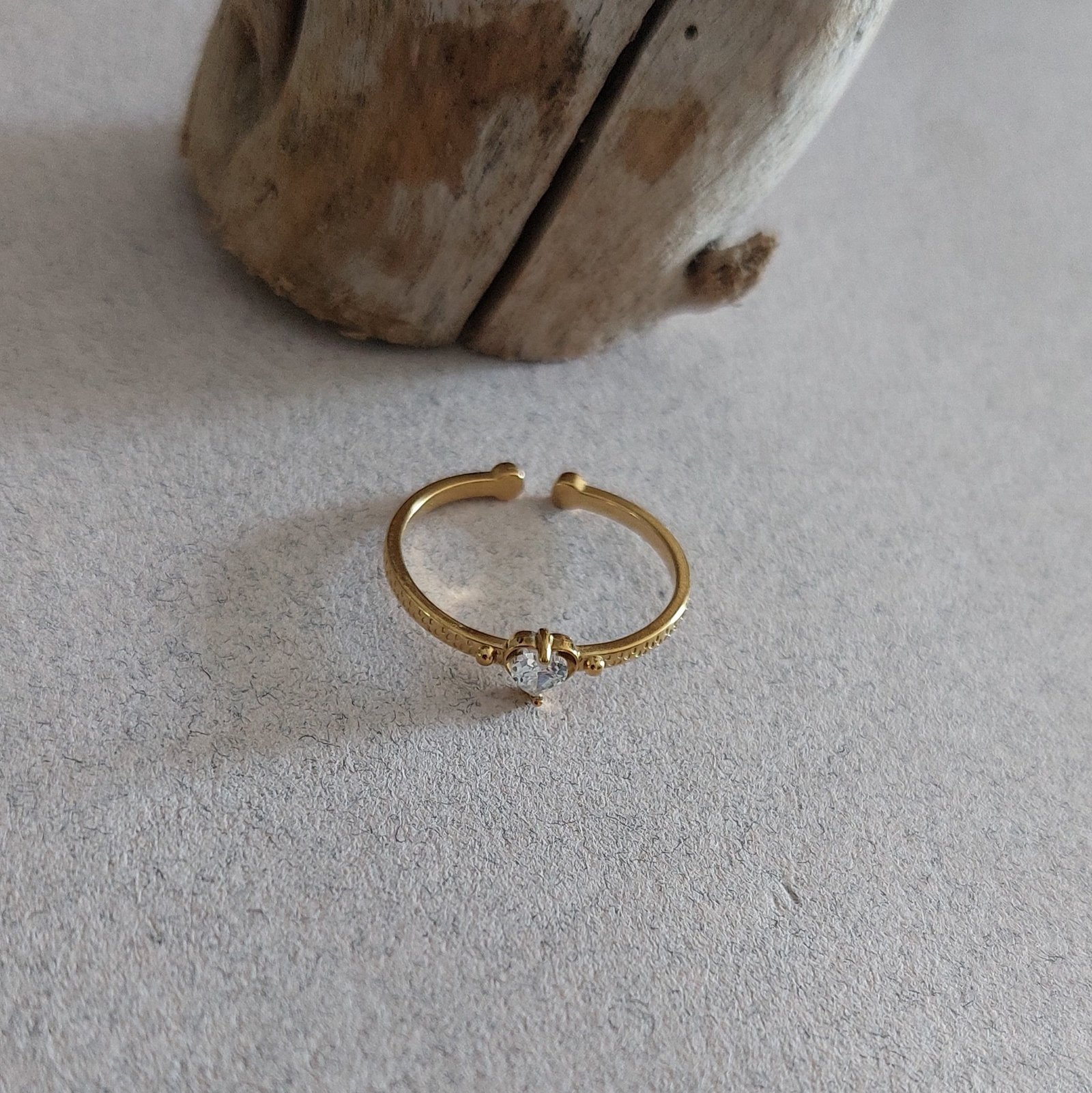 Une bague délicate en acier 304L doré, ornée d’un petit cœur en oxyde de zirconium, idéale pour apporter une touche de douceur et de lumière au quotidien.