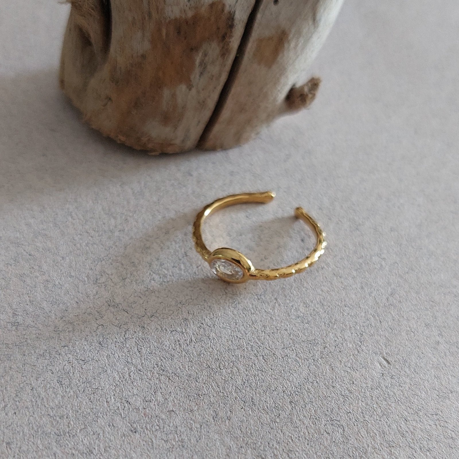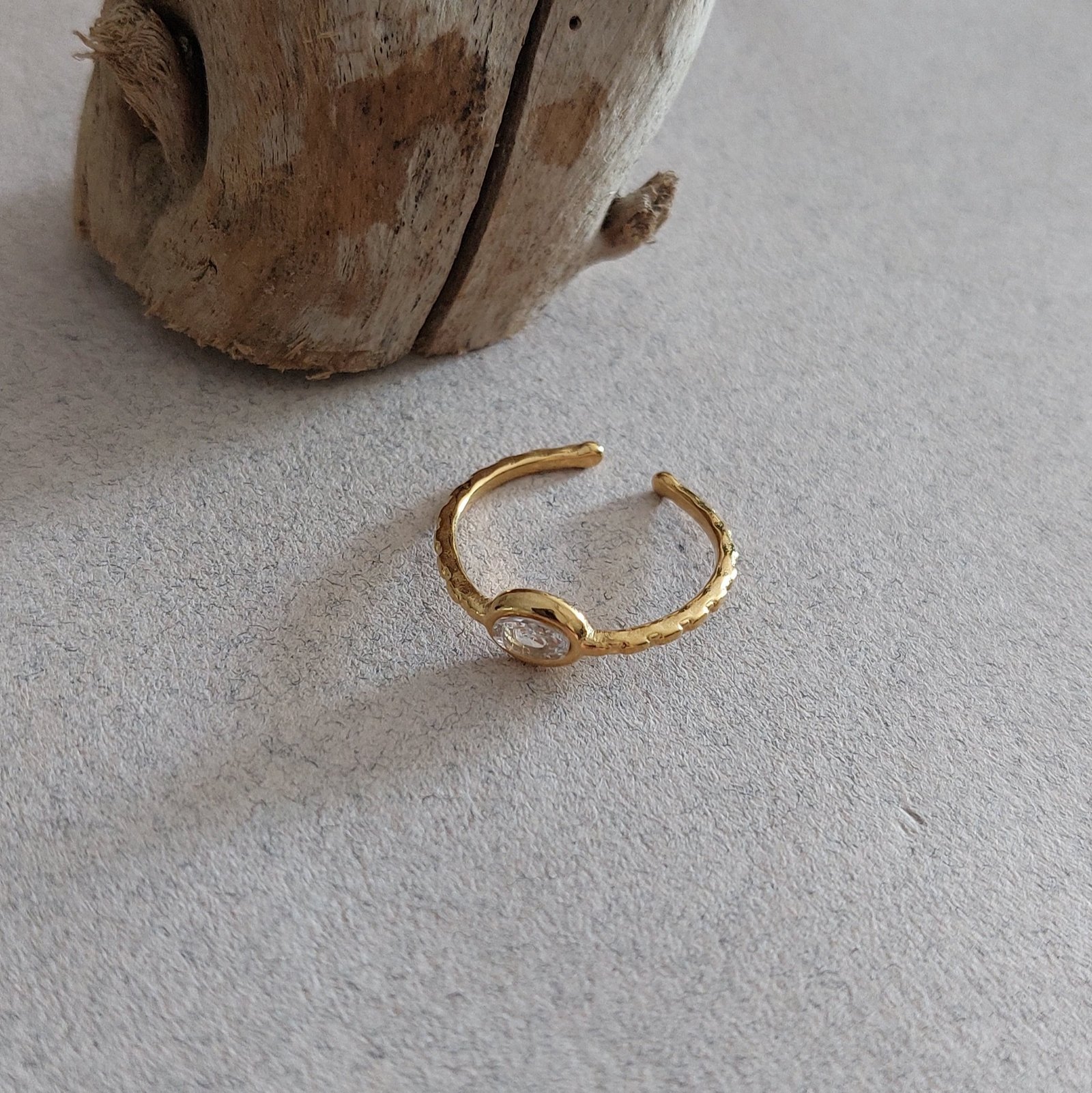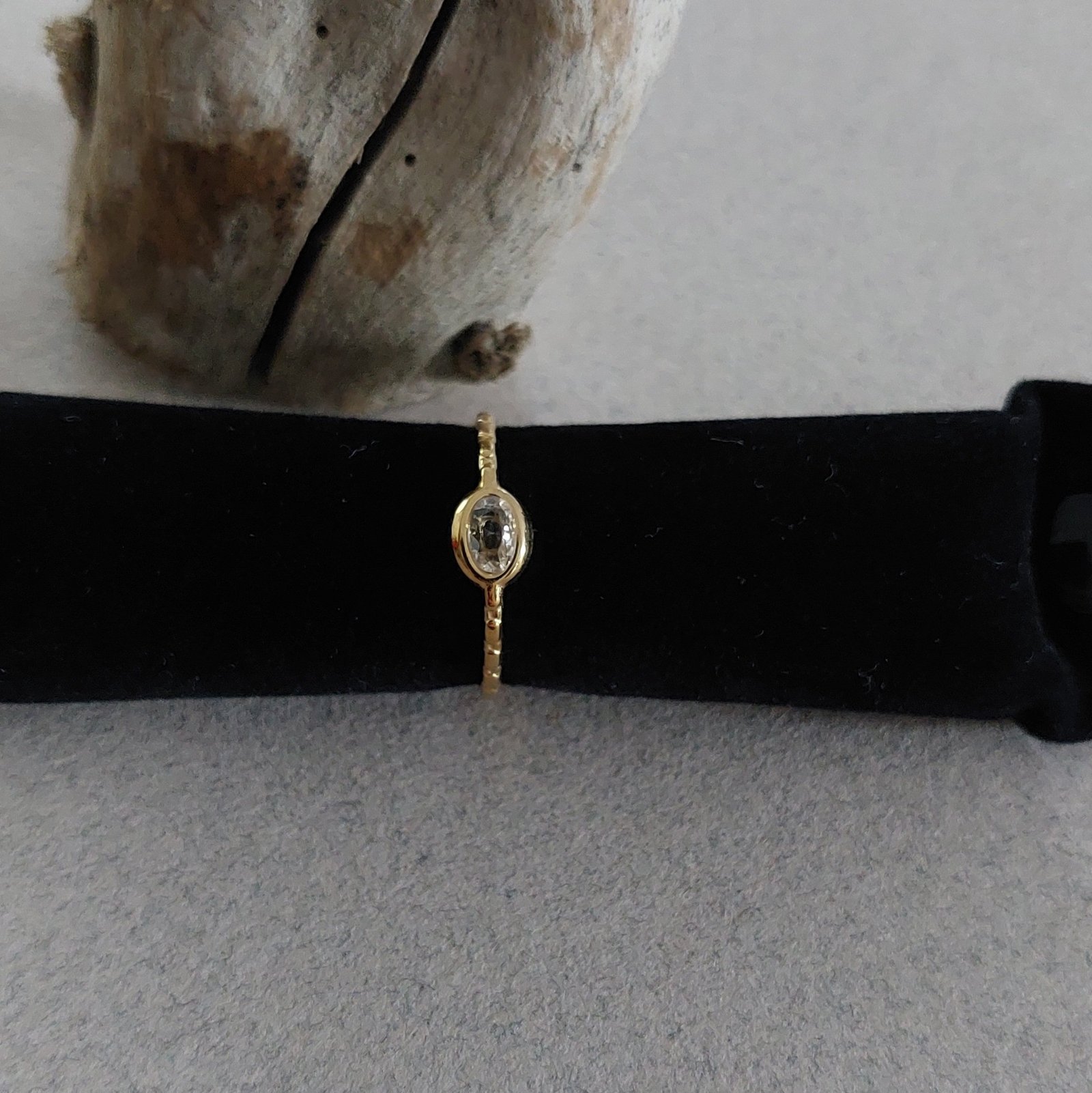 Minimaliste et raffinée, cette bague en acier inoxydable 304L doré séduit par sa finesse délicate et son design épuré. Un oxyde de zirconium oval couleur cristal blanc apporte une subtile touche de lumière et d’éclat, idéale pour un style discret mais élégant.