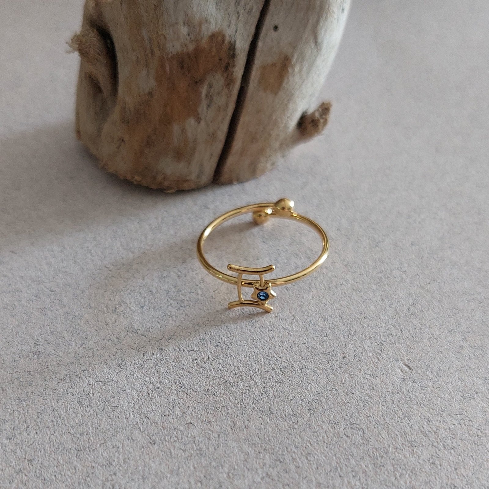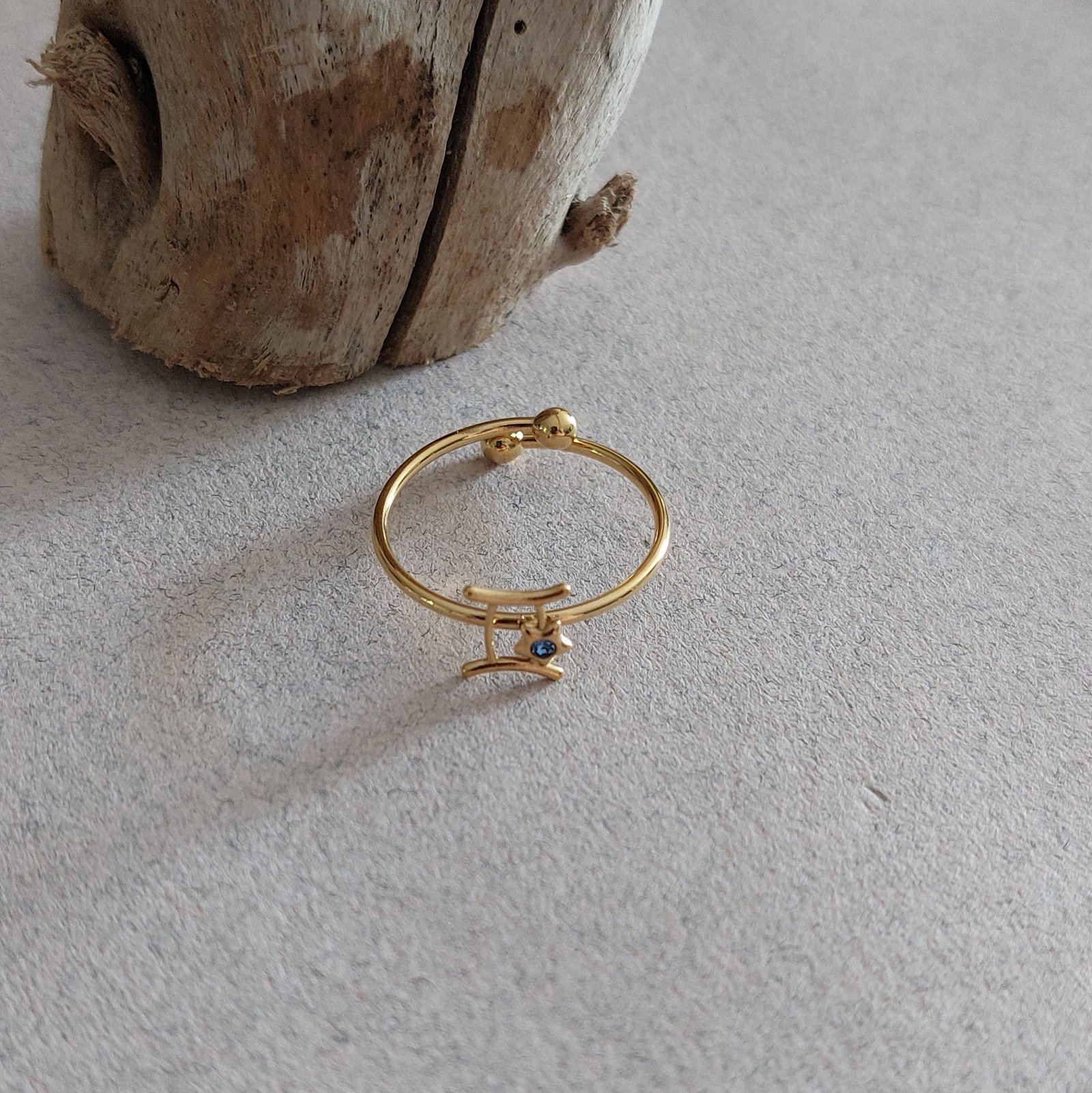 Bague zodiaque Gémeaux – Acier doré & light sapphire