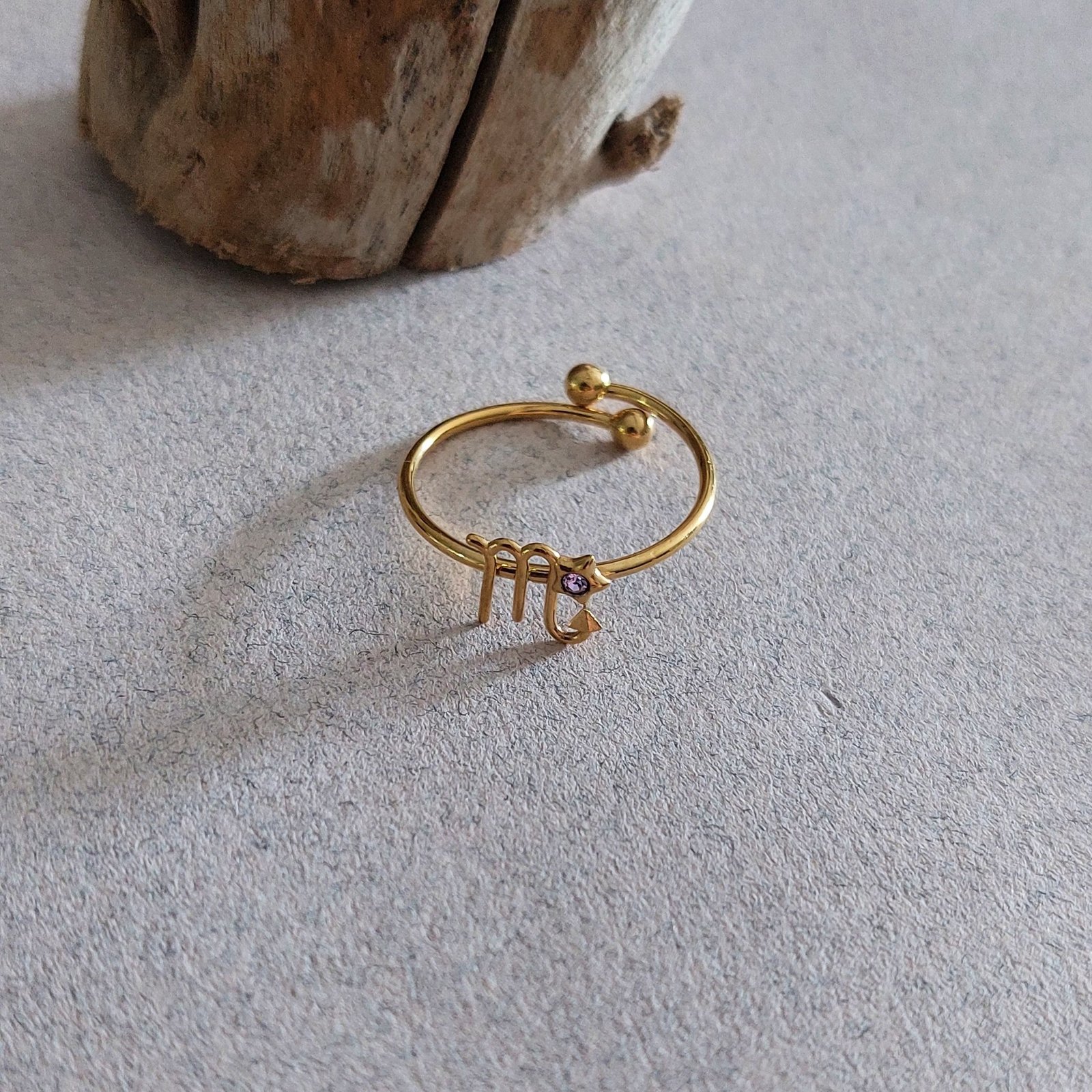 Bague zodiaque Scorpion – Acier doré & oxyde de zirconium light amethyst