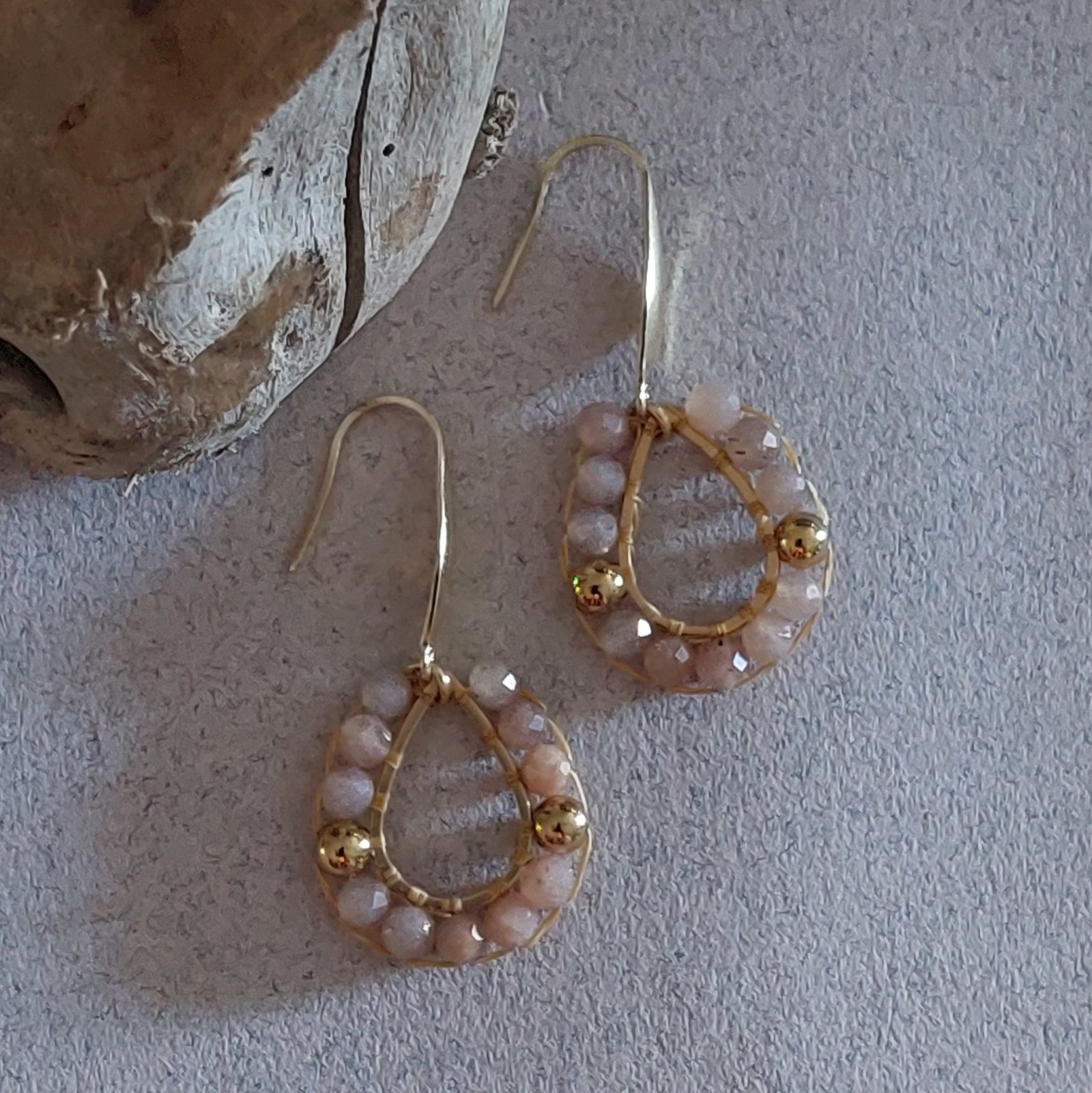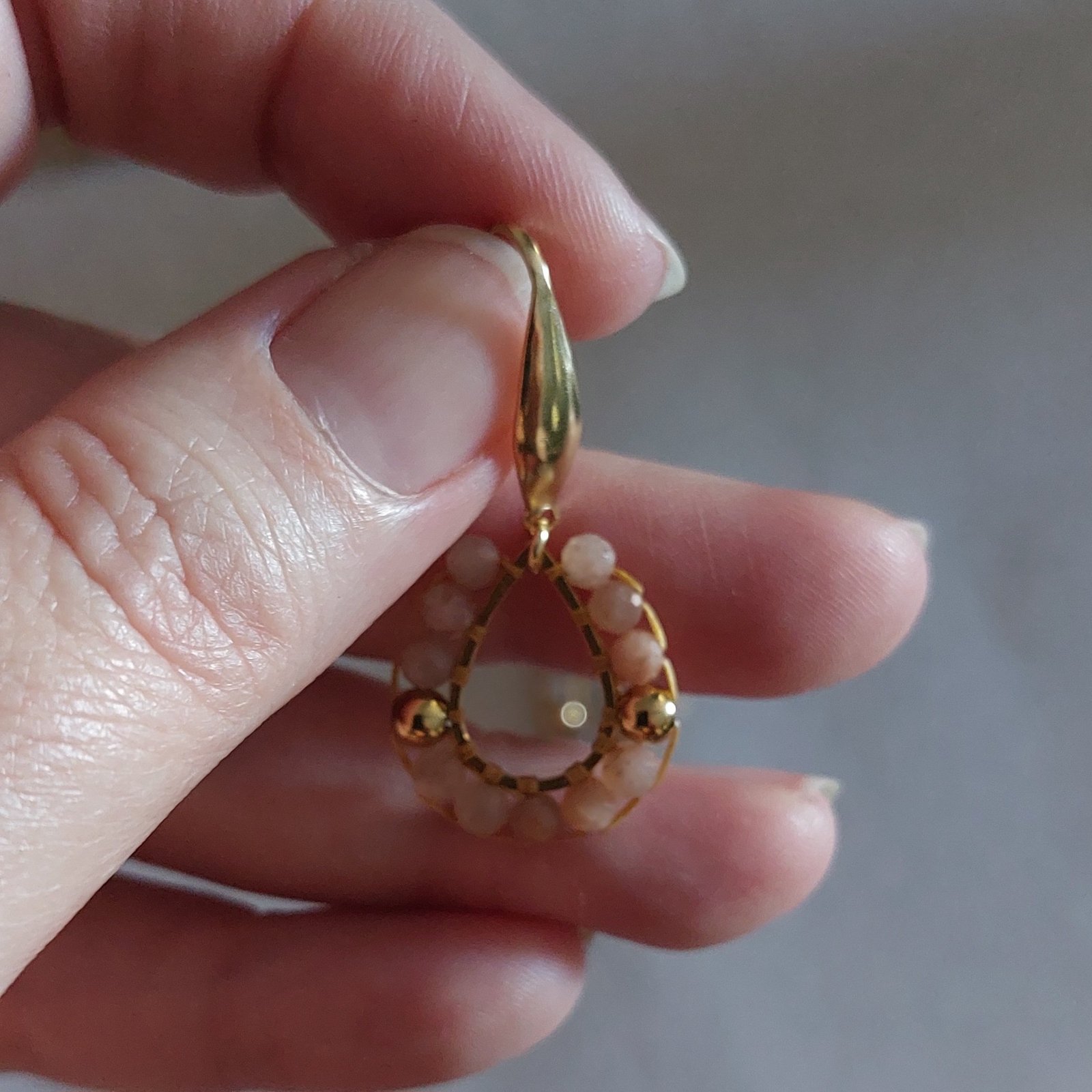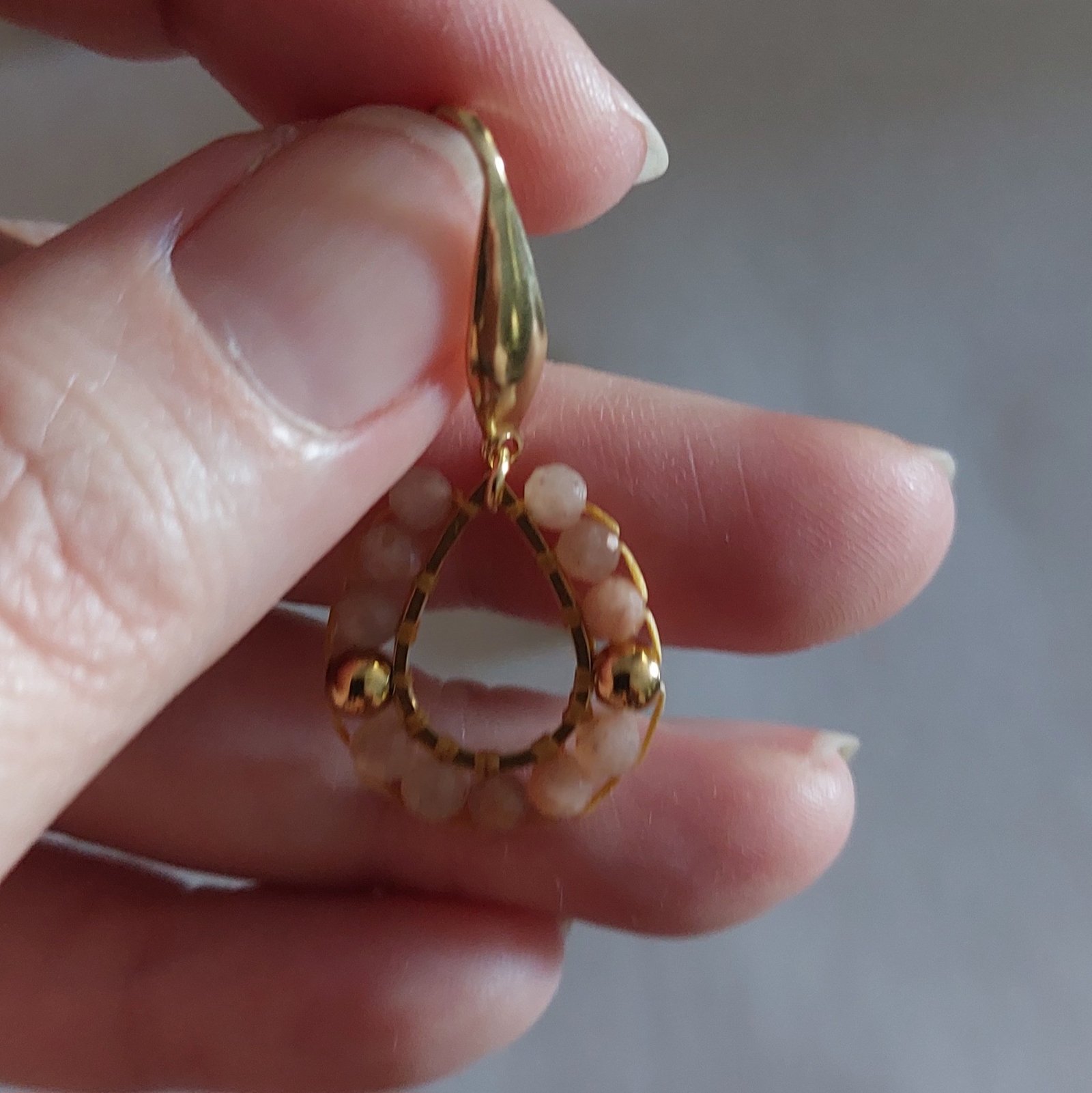 🤍 Boucles Aurèle ▪︎ Acier doré · Pierre de lune pêche