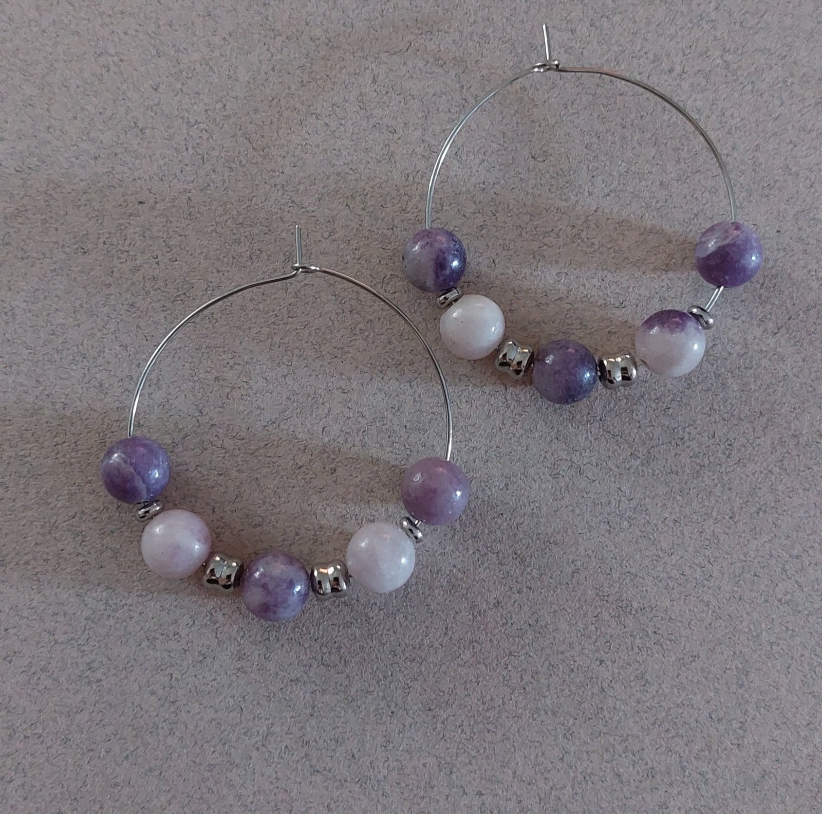 A la une, Boucles d'oreilles, Lépidolite, Les argentées, Les bijoux argentés, Les créoles, Nuit D'été
