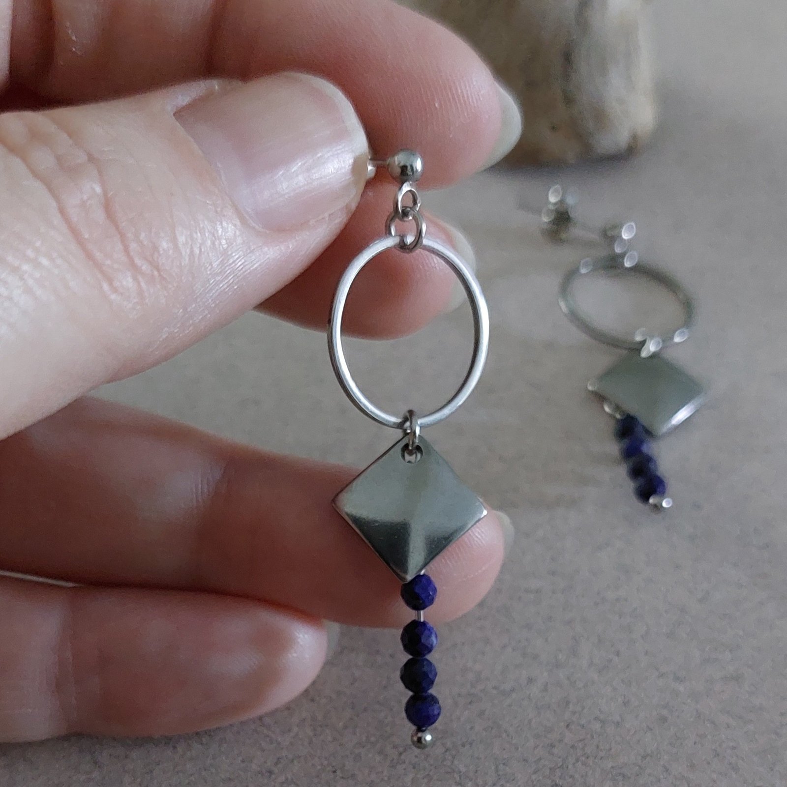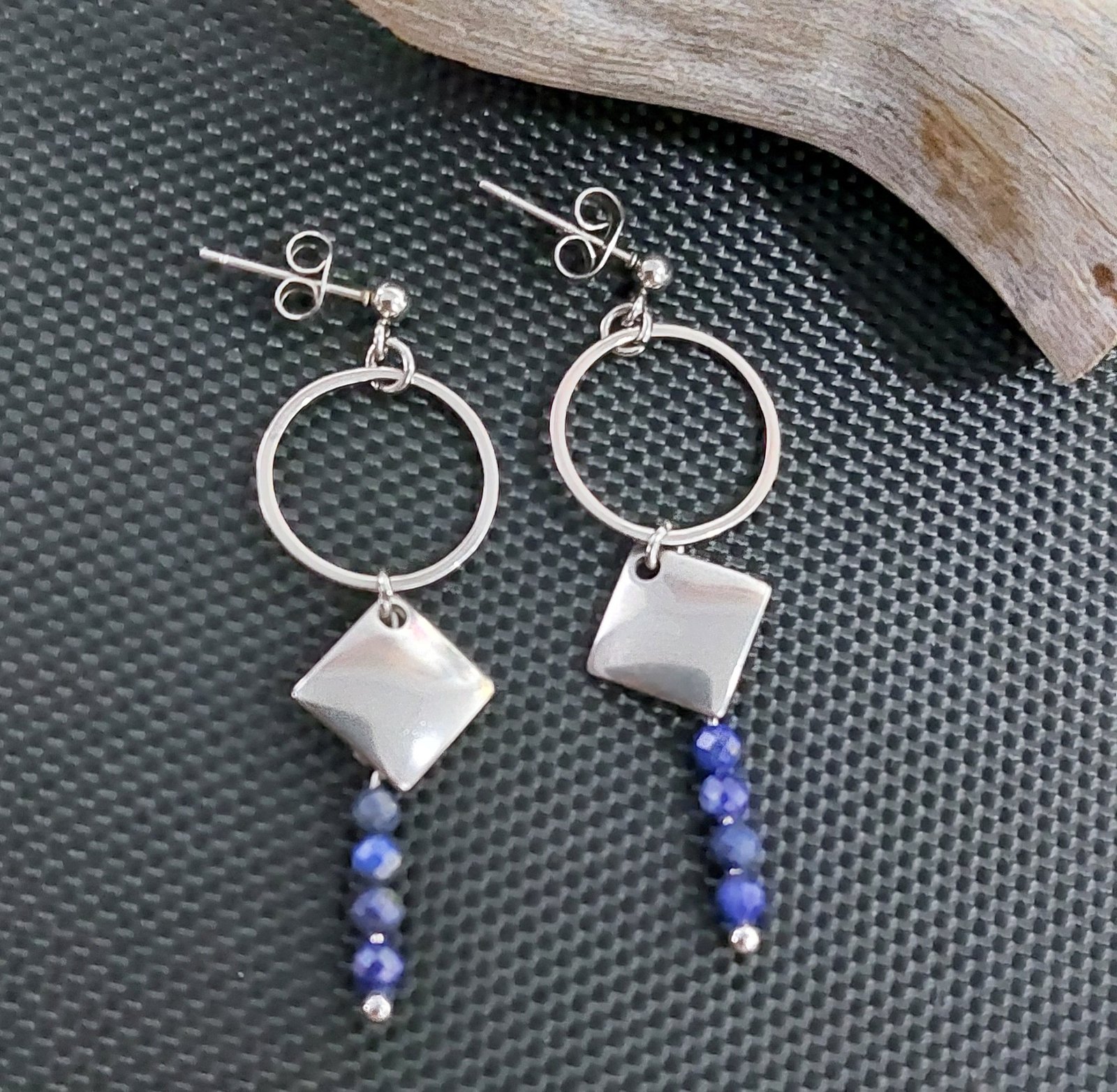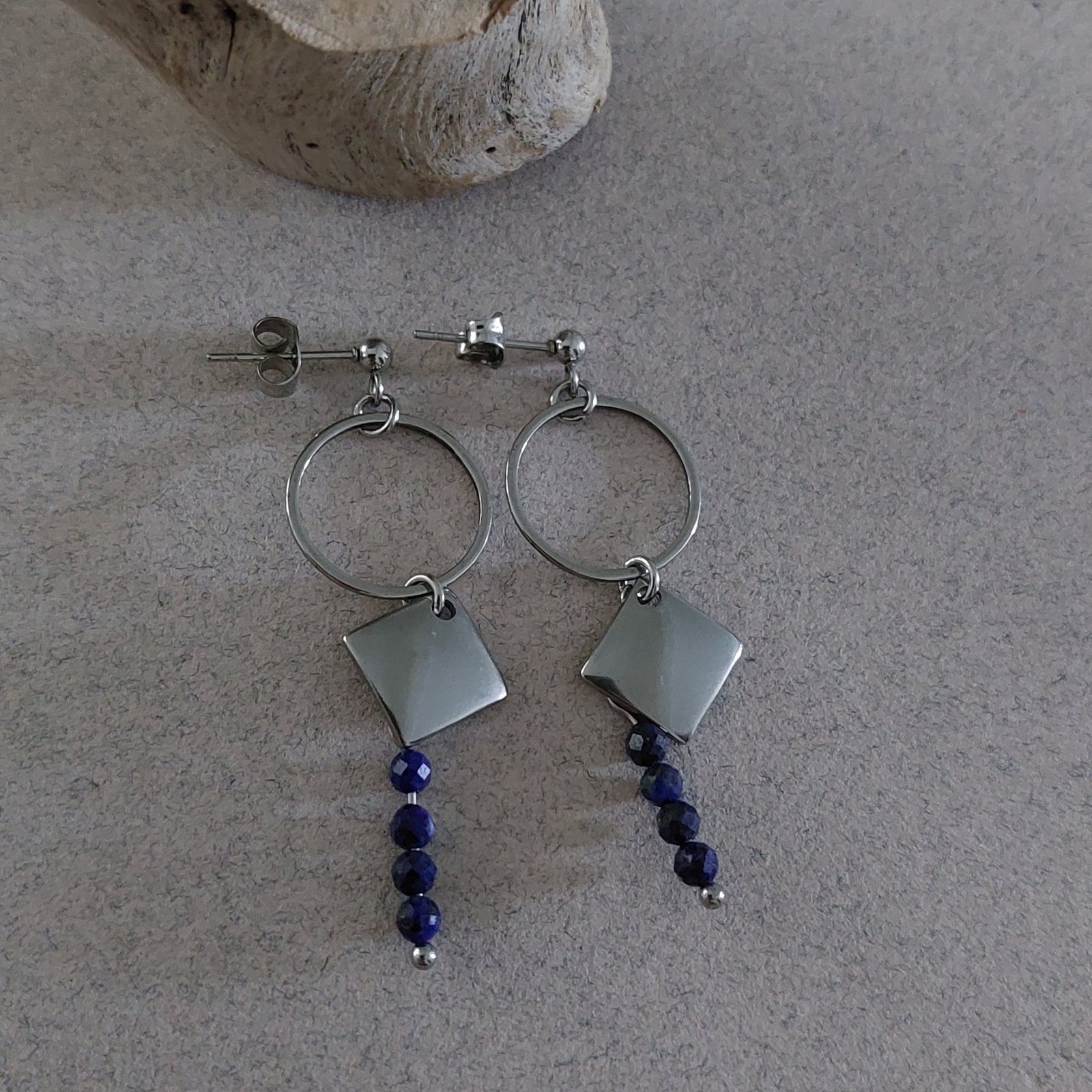 Ces boucles en acier apporteront une jolie note de bleu profond avec le lapis-lazuli.