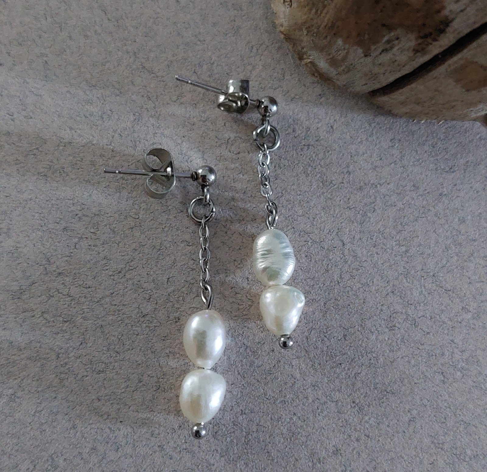 Ces boucles en acier sont d’une élégance parfaite avec ces perles naturelles blanches nacrées.
