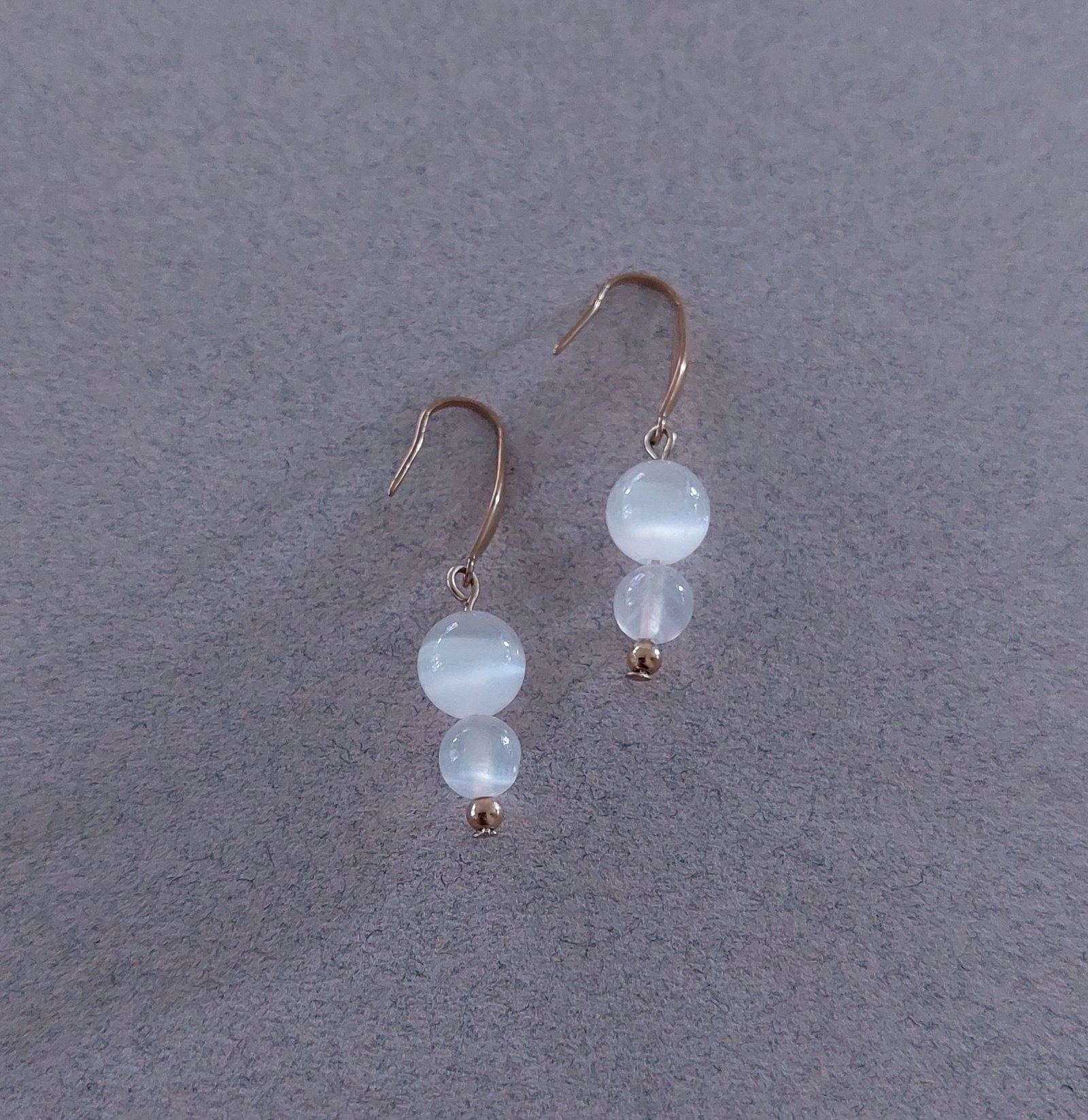 ✨ Boucles d’oreilles en acier doré et sélénite ✨