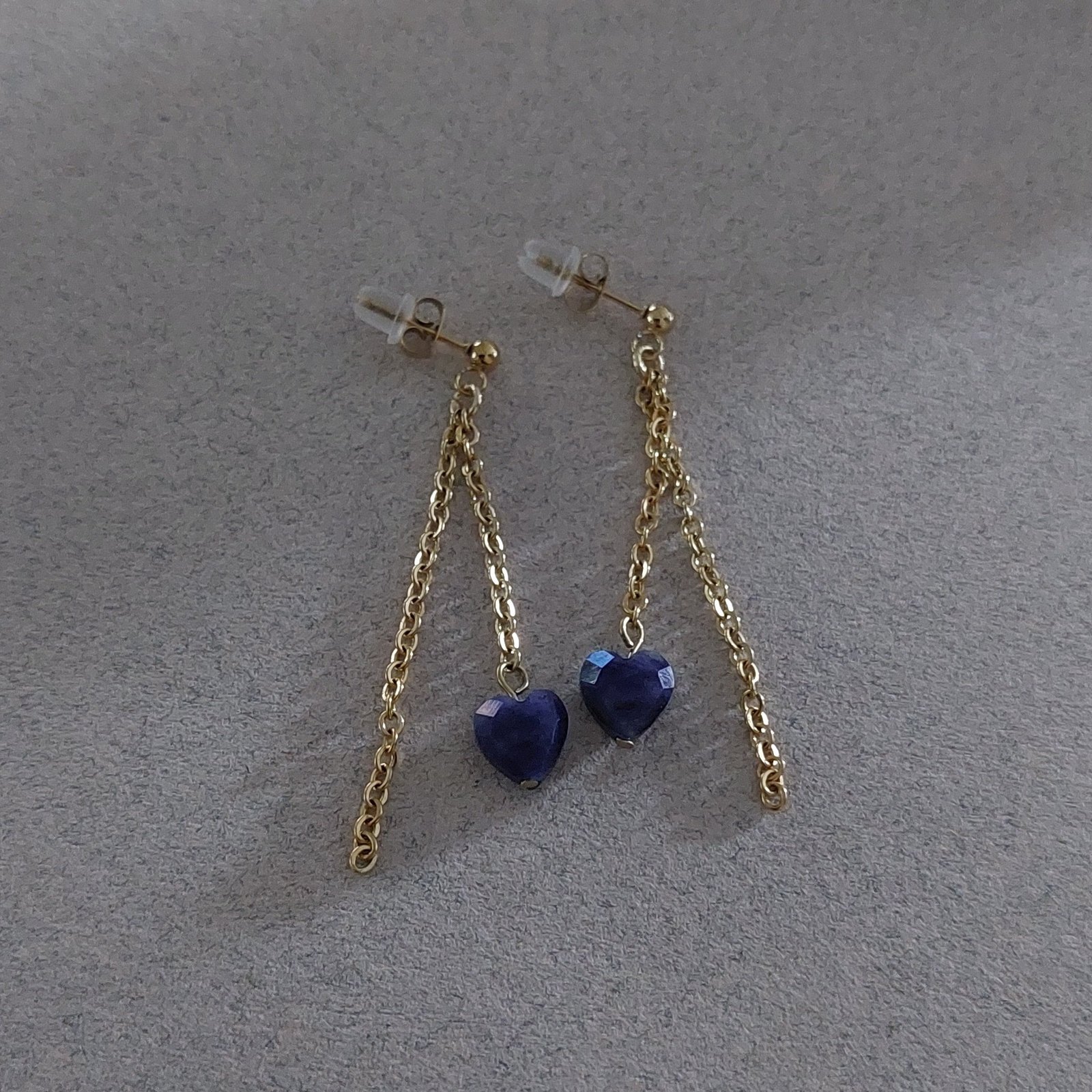 Le bleu profond de la sodalite se marie à de fines chaîne dans ces boucles en acier doré.