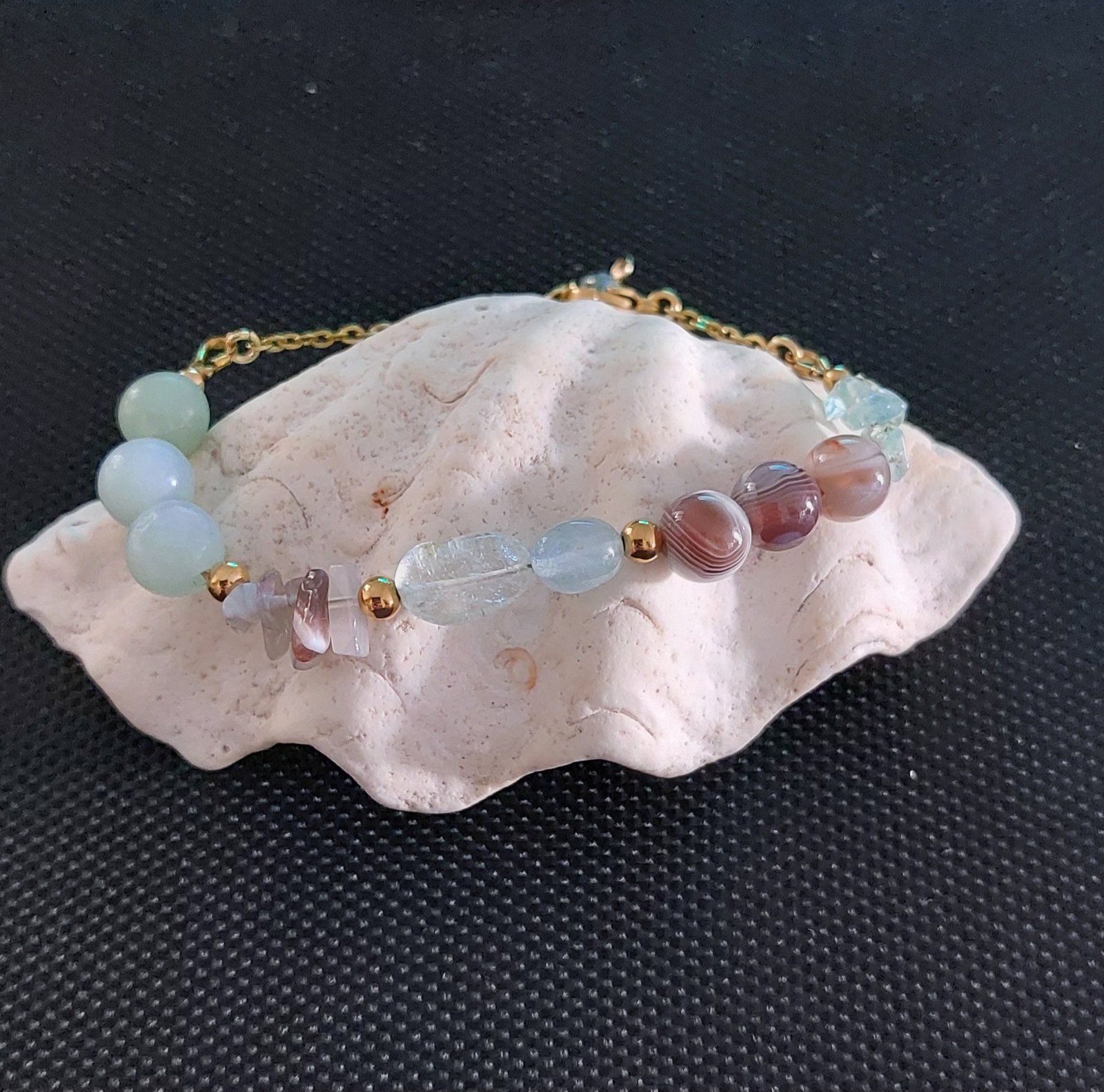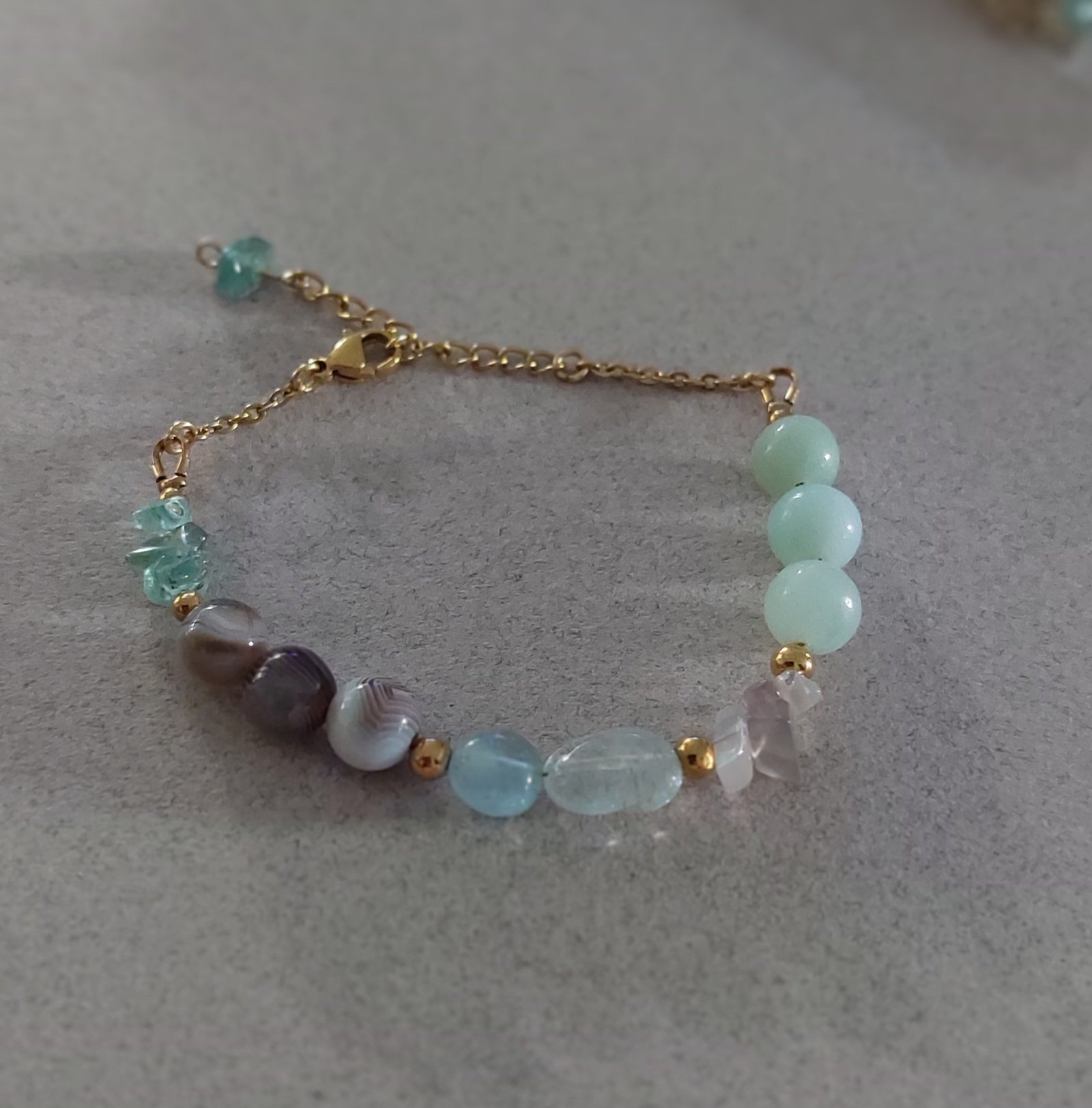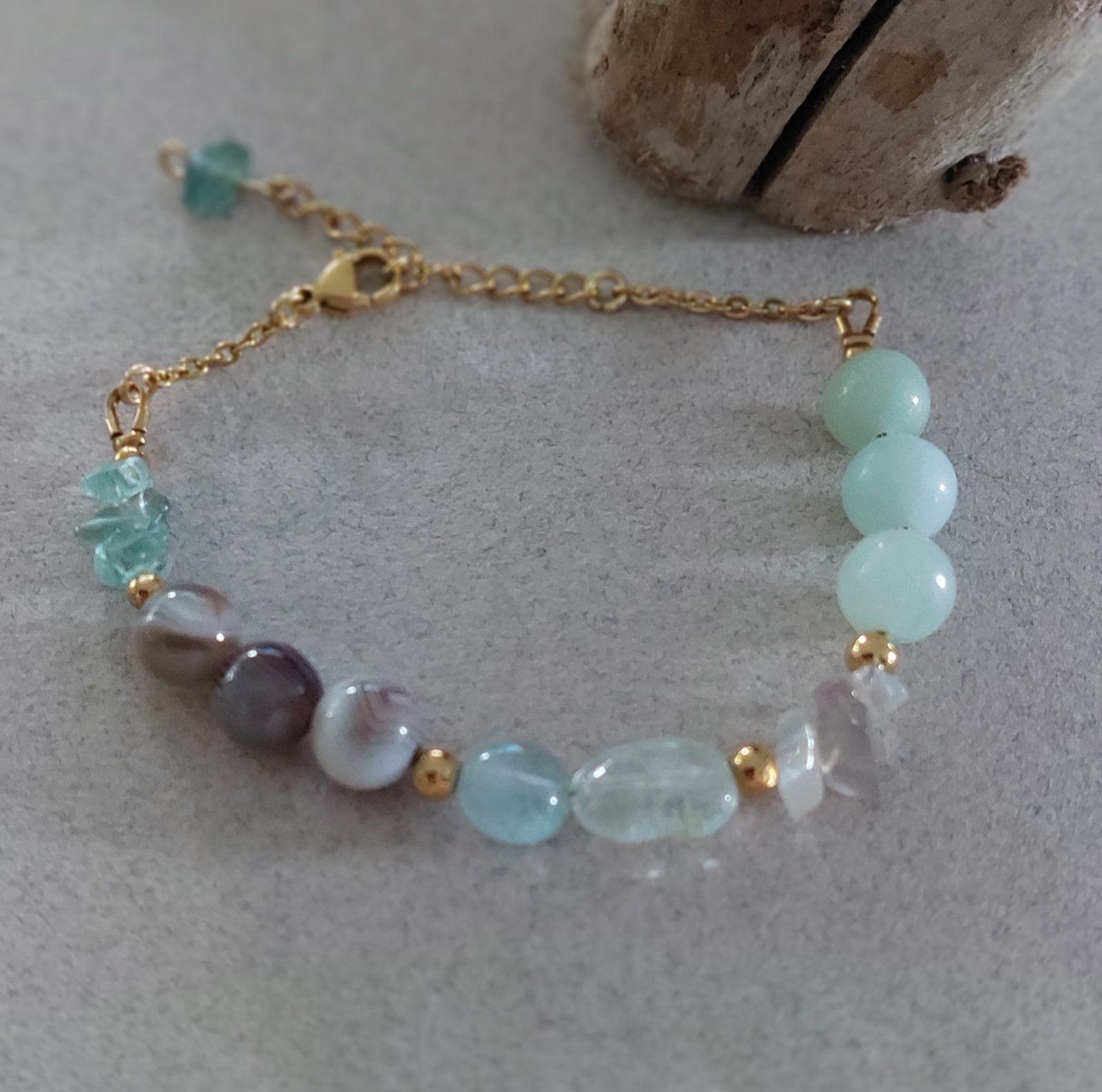 Bracelet Amazonia: « Harmonie Douceur » – Amazonite, Agate du Botswana & Aigue-Marine