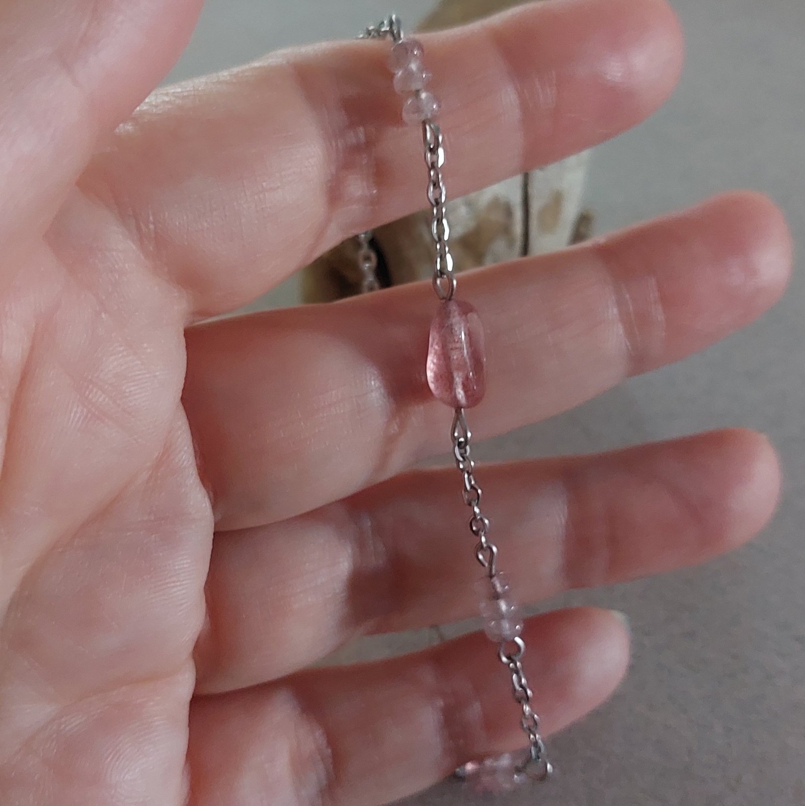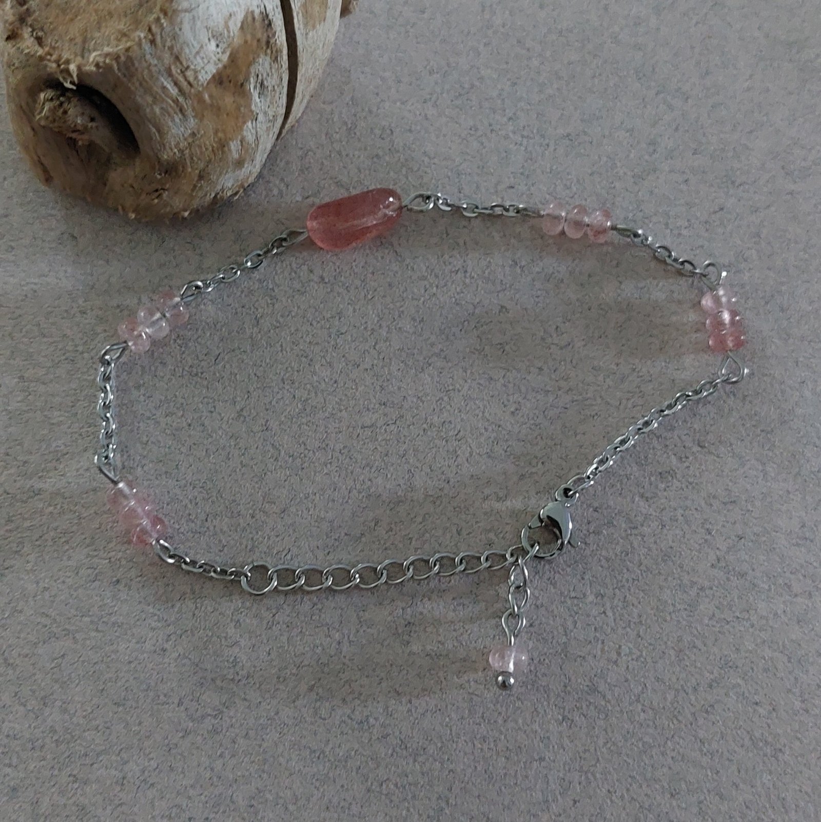 - Bracelet avec rondelles de quartz fraise 2×4 mm