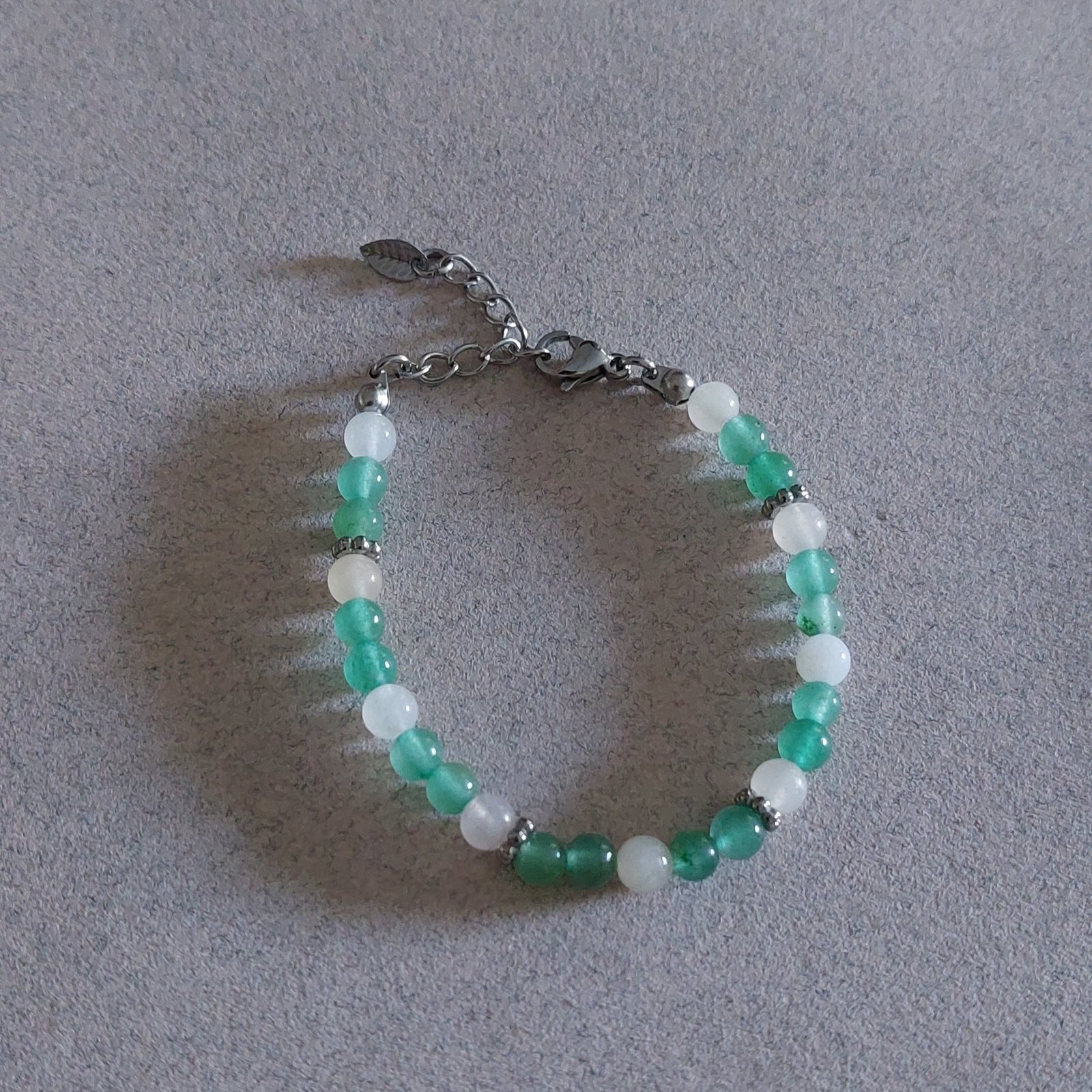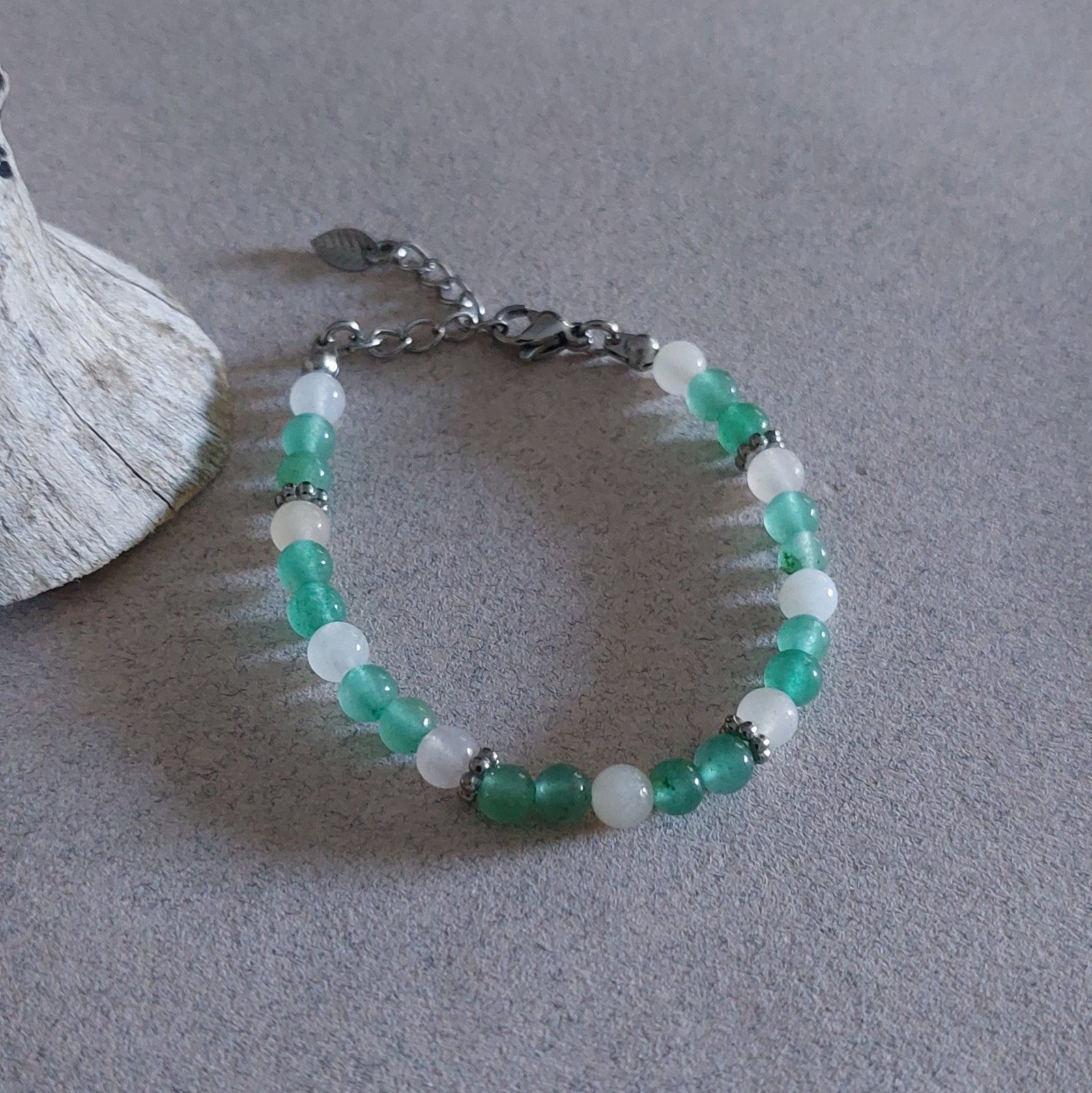 Bracelet pour enfant en acier, perles d’aventurine verte et quartz rose.