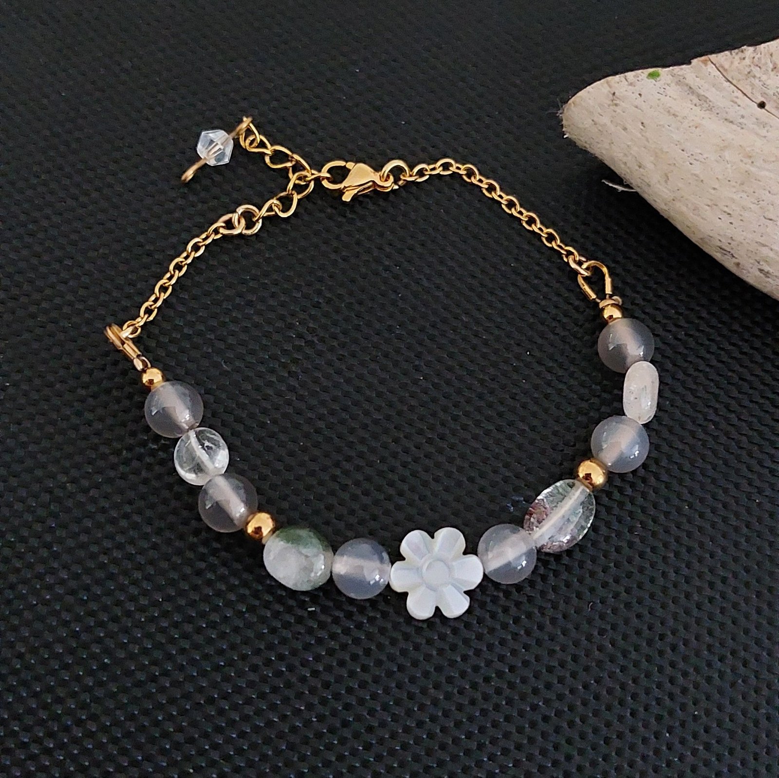 Bracelet Nebula en Lodolite & Calcédoine Grise – Douceur Intuitive