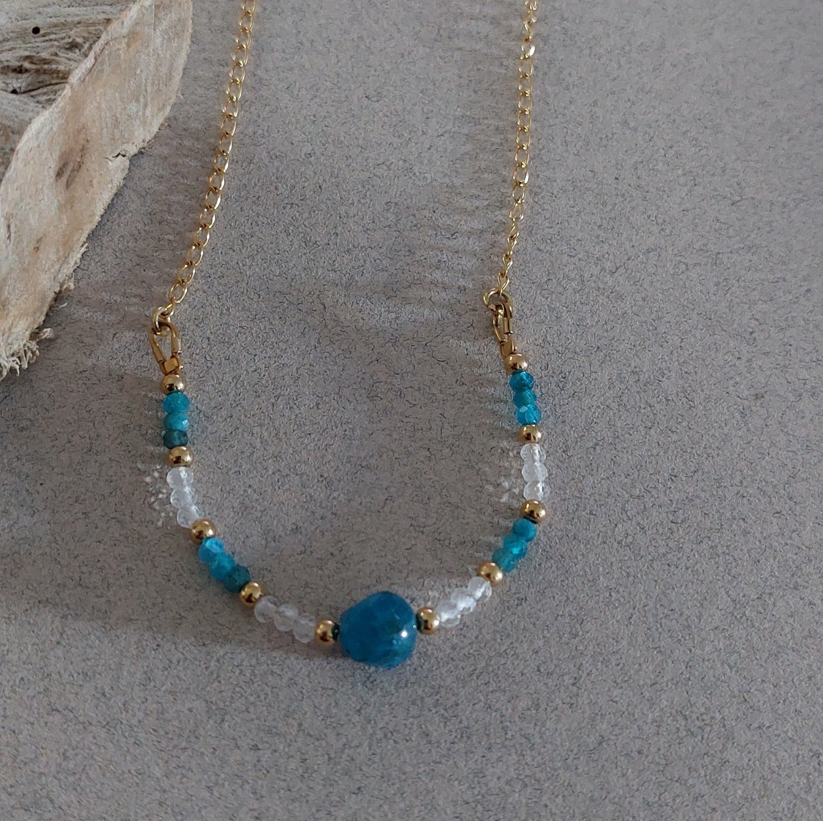 🔹 Collier en Apatite & Cristal de Roche – Clarté & Énergie