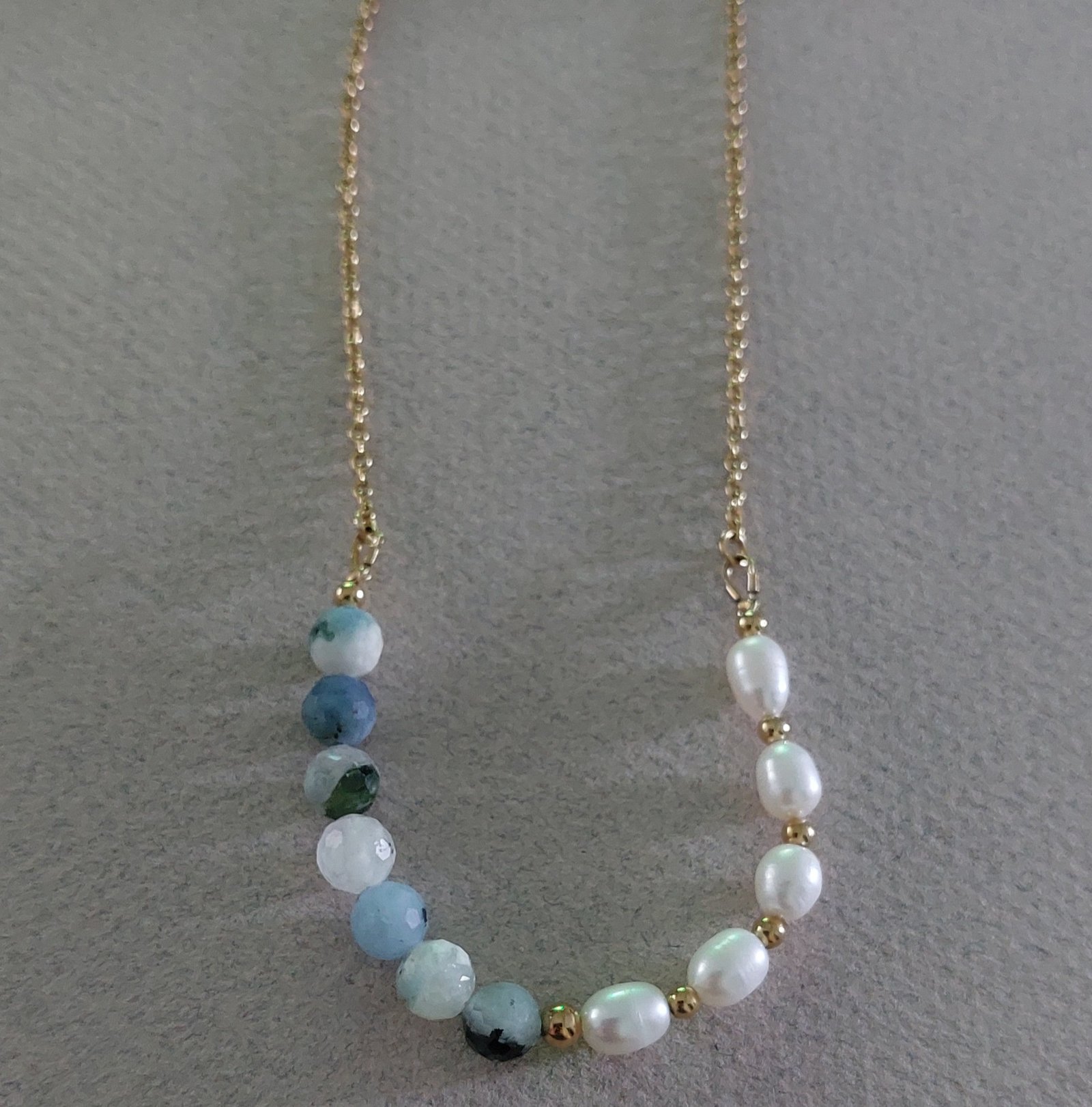 💫 Fait main avec passion, ce collier incarne la rencontre entre la mer et la terre — un bijou empreint de sérénité et de raffinement naturel.